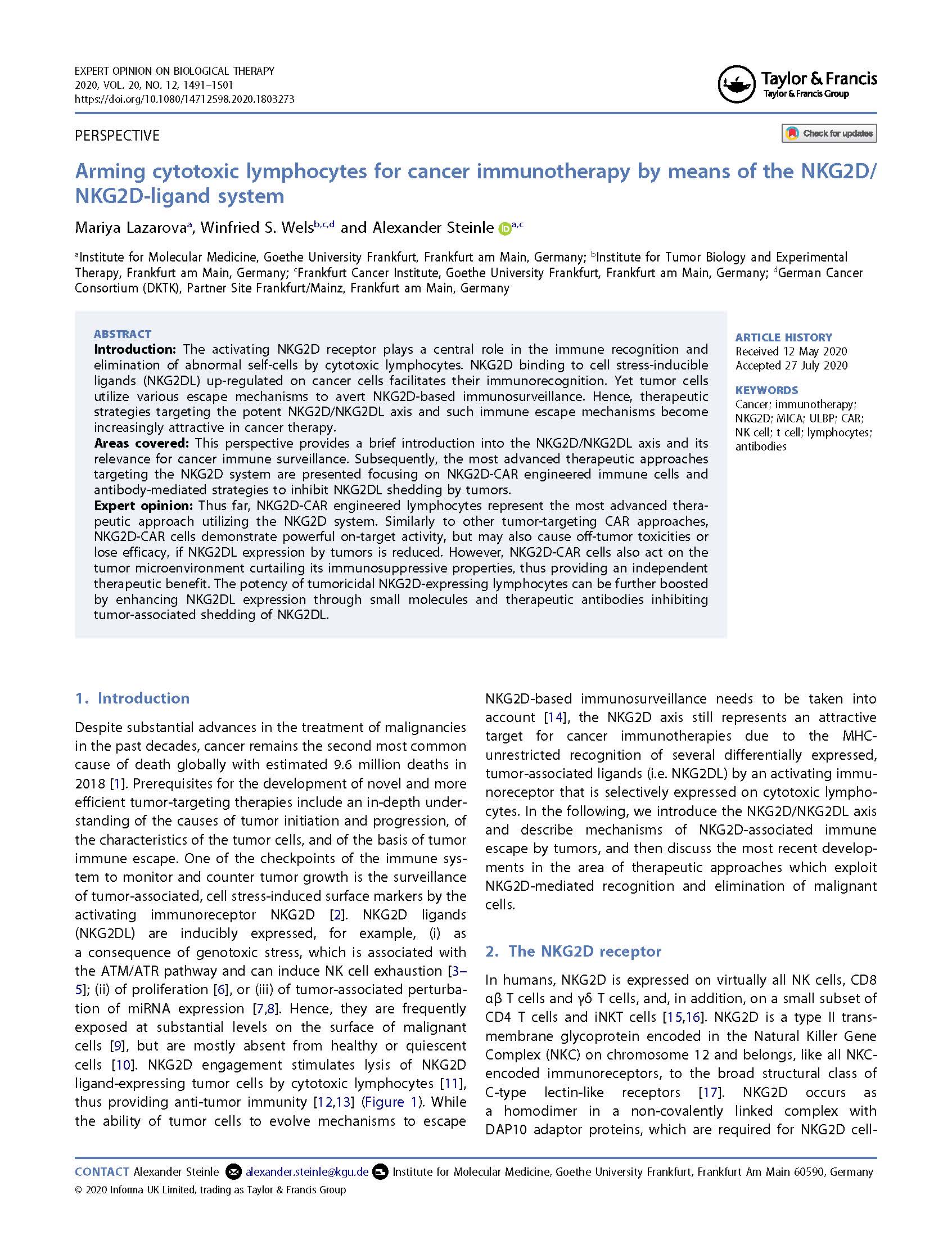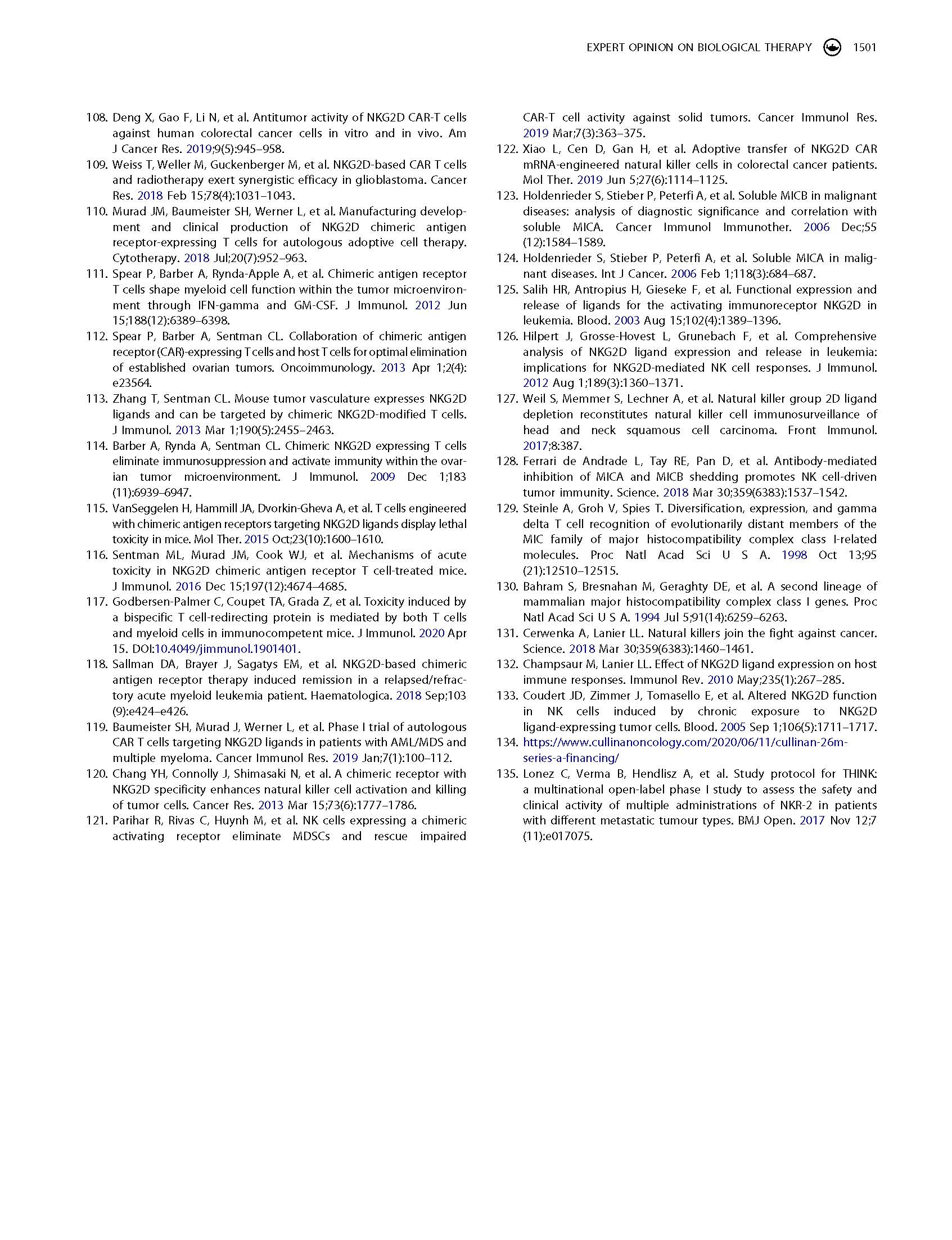專家意見 Arming cytotoxic lymphocytes for cancer immunotherapy by means of the NKG2D/NKG2D ligand system