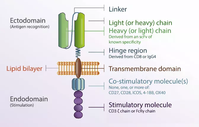 首先, 讓我們簡(jiǎn)單回顧下CAR-T療法的作用機(jī)制, CAR(嵌合抗原受體)是一種基因工程技術(shù)制造的人工受體分子,它可以賦予免疫效應(yīng)細(xì)胞(如T淋巴細(xì)胞)針對(duì)某個(gè)靶點(diǎn)抗原表位的特異性,從而增強(qiáng)T淋巴細(xì)胞識(shí)別抗原信號(hào)與活化的功能,繼而回輸淋巴細(xì)胞以實(shí)現(xiàn)抗腫瘤的作用。